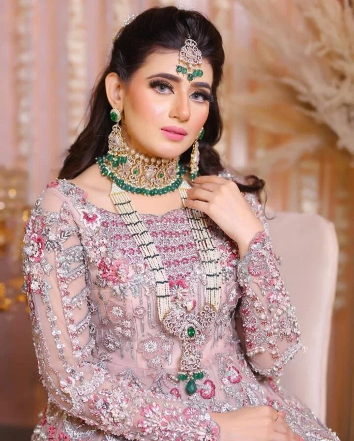 Bridal Maxi on Pure Net ,With Handmade Fully Loaded Work with Cora,Dubbka,Beads,Peral,Sitara,Kutdana,Threadwork,etc.